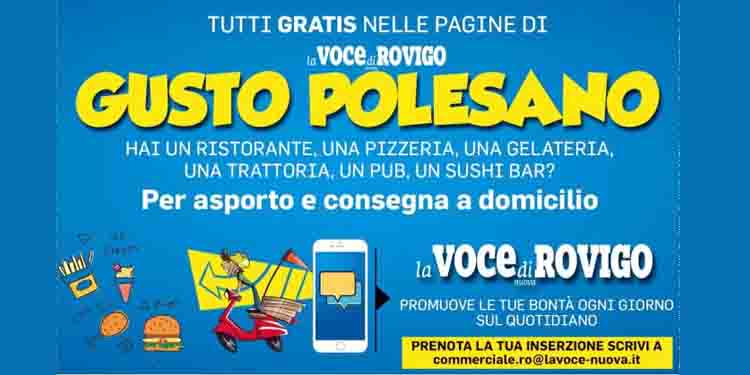 In questo contenitore, inserito all’interno de “La Voce di Rovigo” ci saranno ristoranti, trattorie, pizzerie, bar, sushi bar, tutti quelli che hanno scelto di affidarsi all’asporto o alla consegna a domicilio pur di restare aperti. Qui le imprese potranno pubblicare gratuitamente la loro pubblicità.